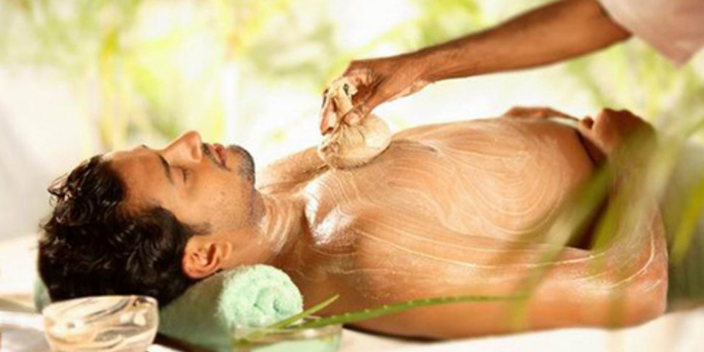 Two bundles are warmed by immersing them in a vessel containing warm oil. These warm bundles are then gently applied in a synchronized manner by two therapists, each on one side of the body. Meanwhile, the other two bundles are warmed. As the heat from the applied bundles diminishes, they are replaced with the warm ones. This therapy is particularly beneficial for chronic backaches, joint pains, muscle cramps, arthritis, neurological disorders, and spondylosis.